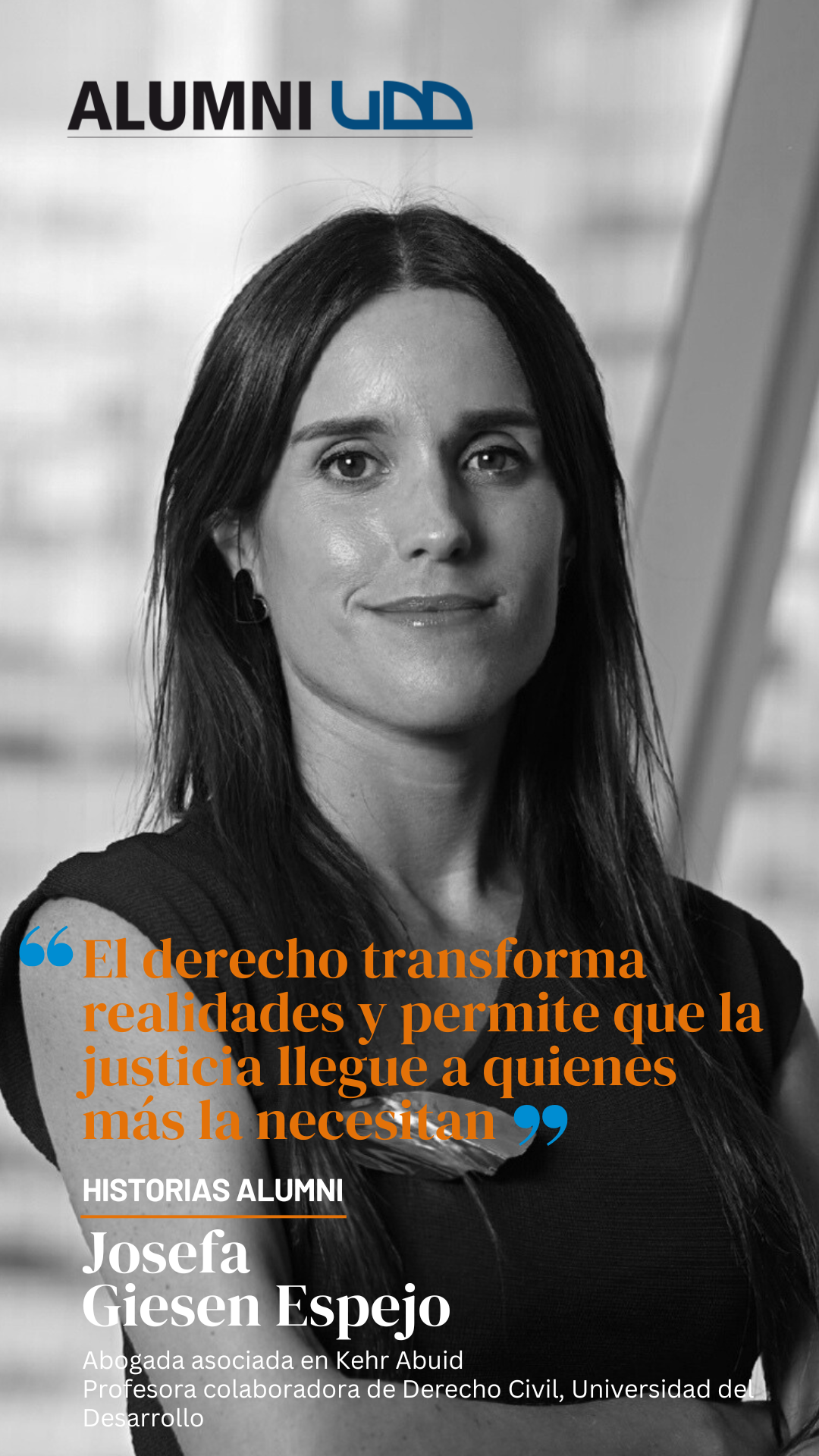 Josefa Giesen Espejo, abogada de la Facultad de Derecho de la Universidad del Desarrollo. Complementó sus estudios con un Máster en Medical Ethics and Law del King’s College London, además de un Magíster en Derecho Ambiental.